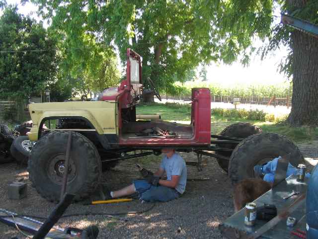 I think the rear TJ springs are going to work pretty well in the back.....there's no weight back there......even w/ the cab and the tube work that's there, 2 guys can lift the whole weight of the chassis from the rear....