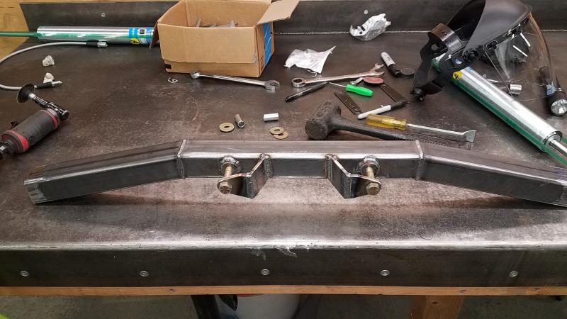 So I looked at different options for the shocks I ended up settling on the common /\ setup. So here is the cross member I came up with for the shocks.
