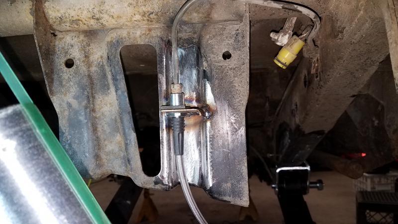 So next I wanted to finish up the brake lines. I started by cutting off the stock hardline to softline mount off the tank mount. I simply took the mount I removed and cut it down and remounted it to the tank mount. Since I tossed the lspv all I had to do was rebend the hardline around and down to the new mount--easy peasy...