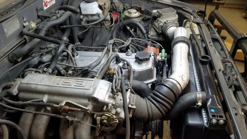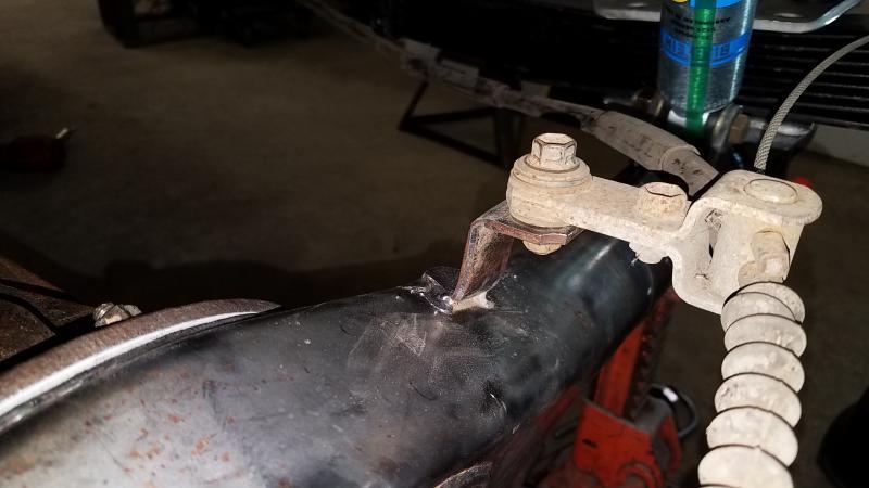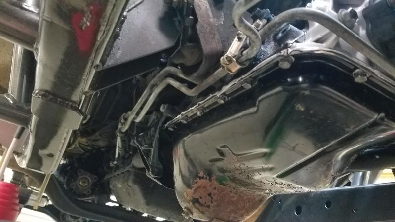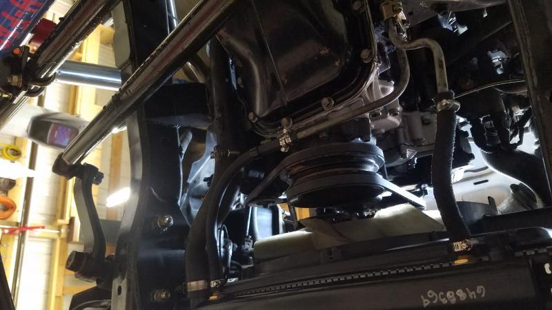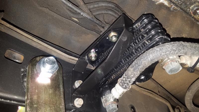 So since the cooler originally goes right where the shackle mount now sits I had to look at other options. I looked at bringing it away from the frame and mounting it in the same spot--but there was not enough room before it hit the trans cooler lines.