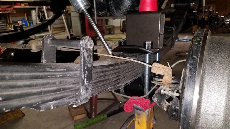 Back to the rear axle. When I got the E-brake cables in place I found no matter how much the mounts got tweaked the spring height got in the way of the cables..