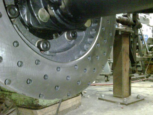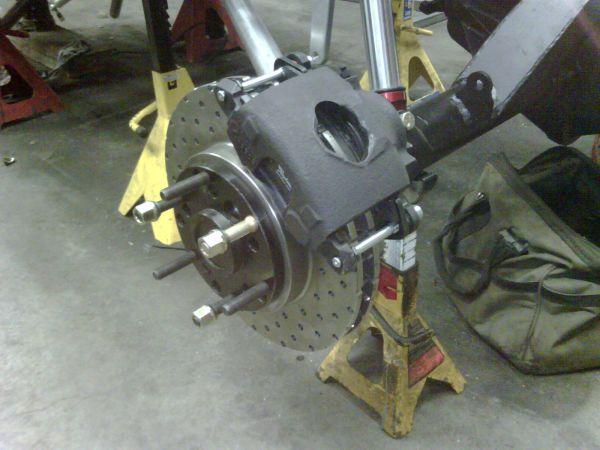 Rear brakes all setup except for the lines, and still waiting for the rear suckdown pulley my buddy was spinning up on his lathe for me.
