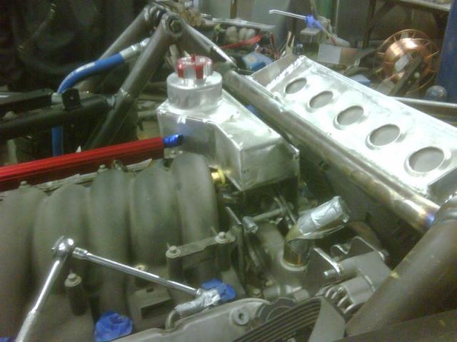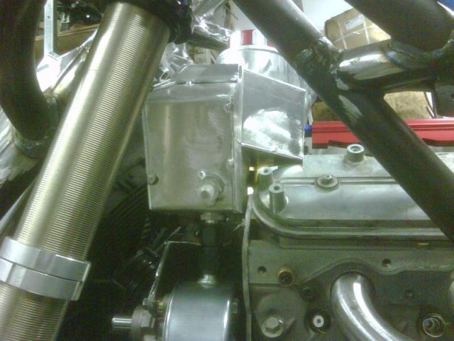 One of the the things I've been working on. I really tried to jam the PSC reservoir in there to save time, it just would not fit without breaking every one of PSC rules as far as feeding the pump goes. This one is a bit larger and has internal baffles that will hopefully keep fluid feeding to the pump at any angle. All tacked up, just needs to be welded up and a couple tabs added to mount it.