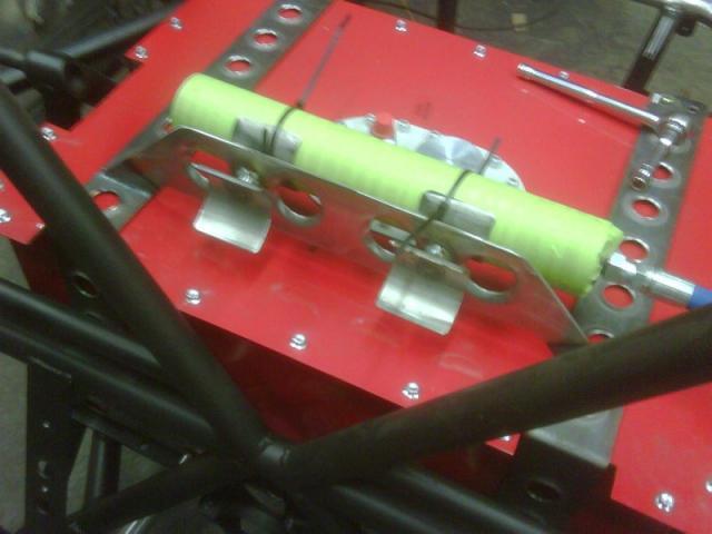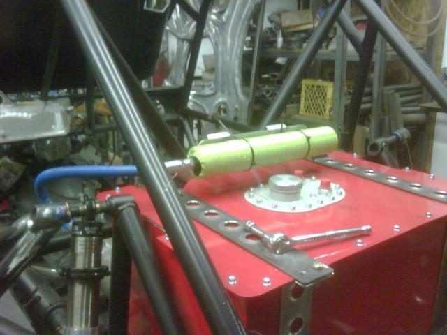 8 litre/quart fluid rack, racing with DSI, I've learned storage for fluids is a must so I built it in to the fuel cell cage.