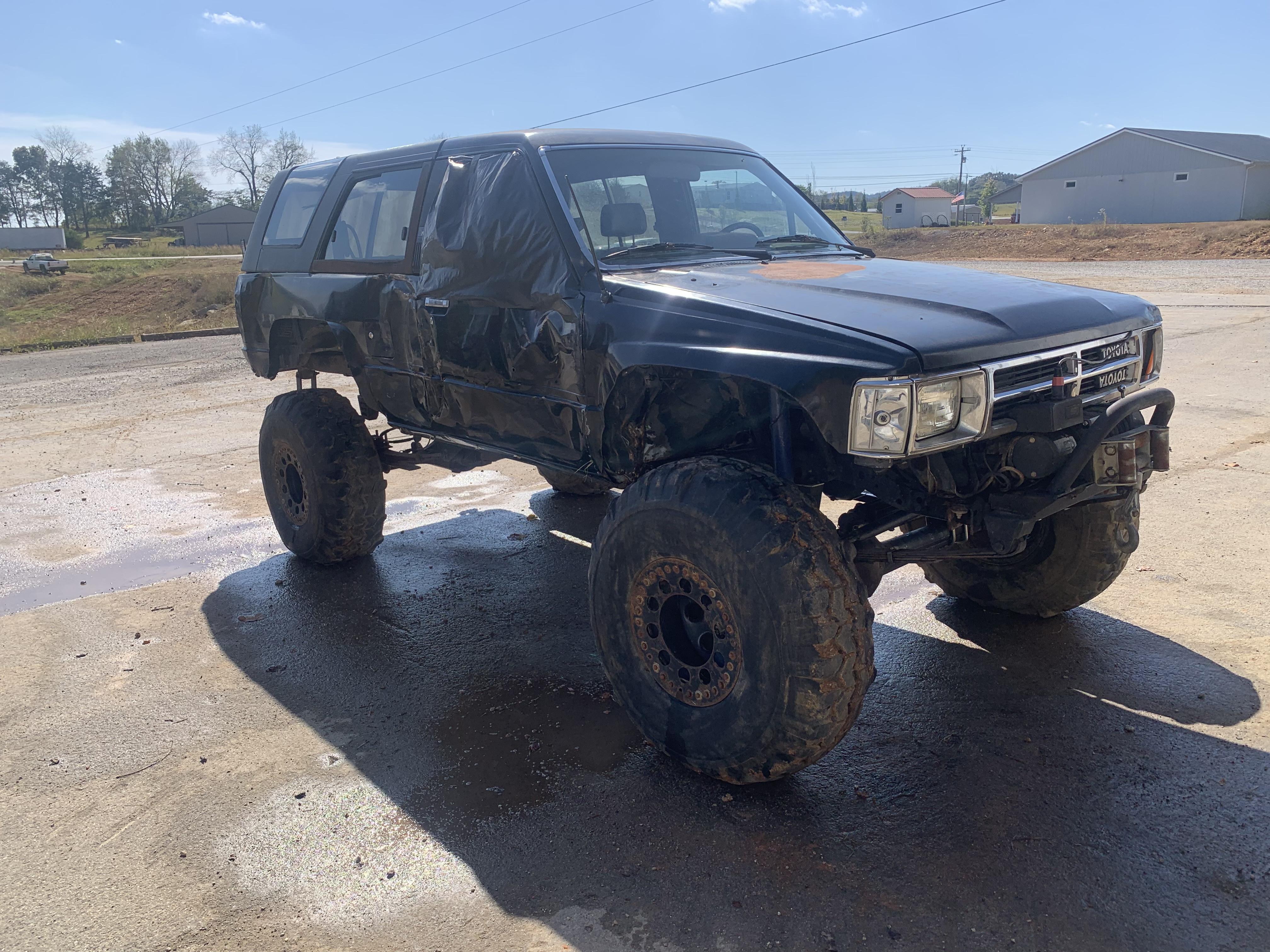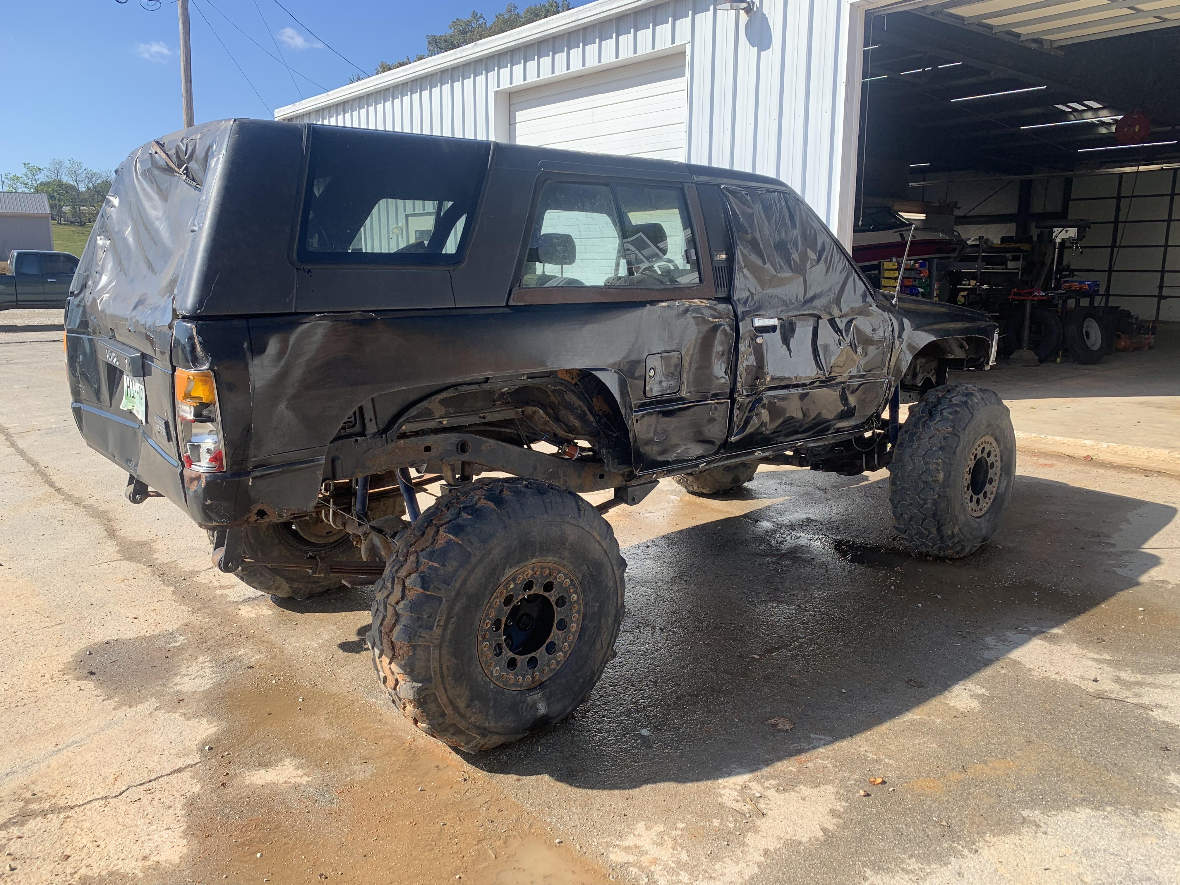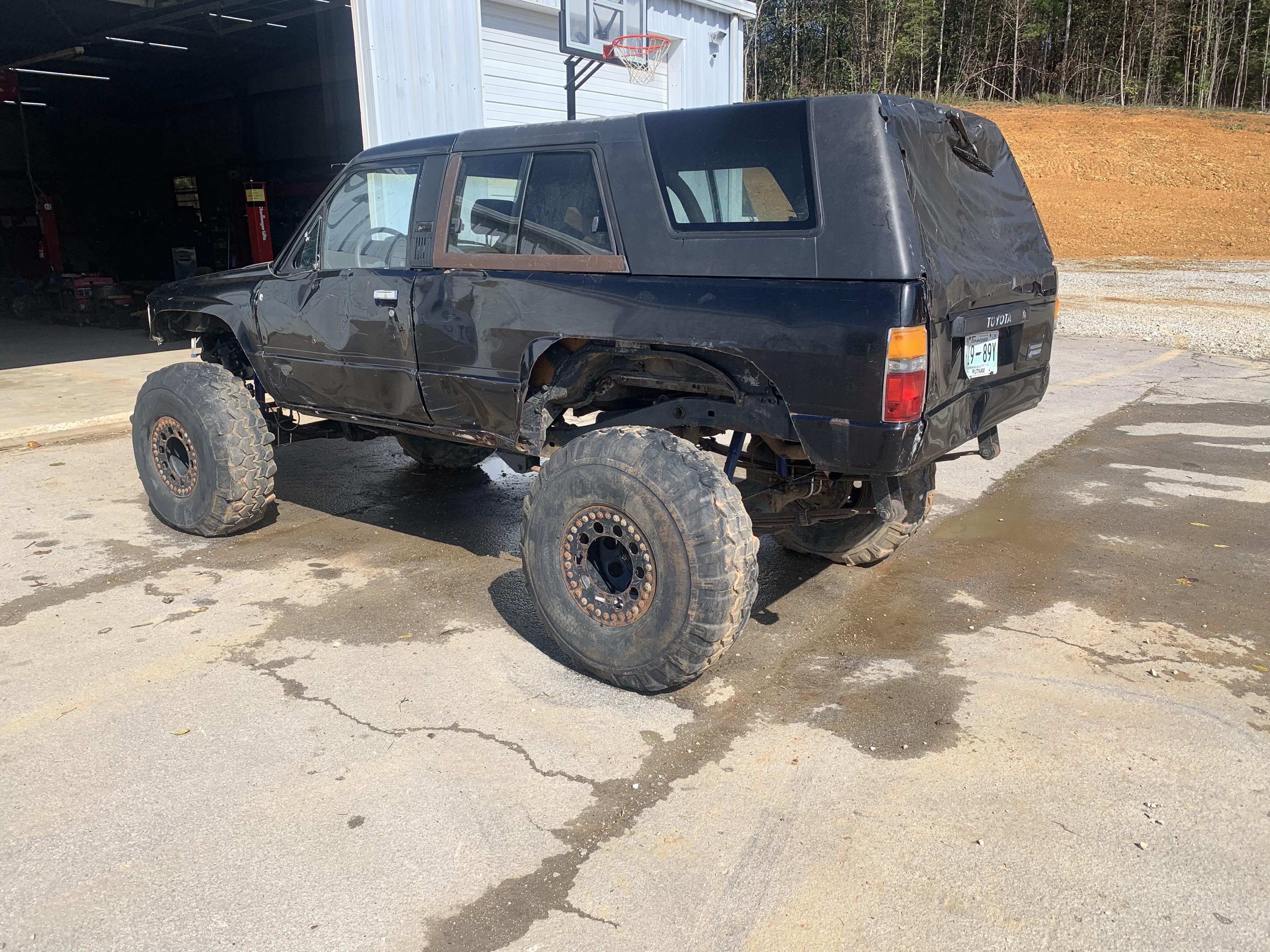 I have a 1989 Toyota 4Runner rock crawler it has a 22re 5speed dual transfer cases, with Toyota axels with 5.29 gears, high steer arms, hydro assist crossover steering with ifs steering box, 38.5 tsl's with beadlocks, stretched in the front with rear Toyota leaf springs with added leafs the rear has 63 Chevy springs, (113) wheelbase, also has shock hoops in the front, 10,000lb winch, new aluminum fuel cell, im sure I'm forgetting some stuff. The passenger side is alittle rough and the back glass and passenger side glass is gone. I have clean and clear ***le in hand.
