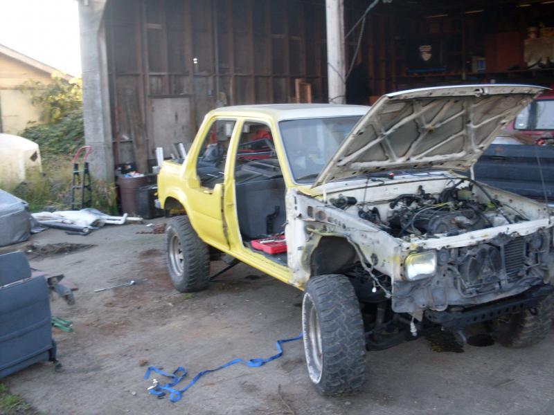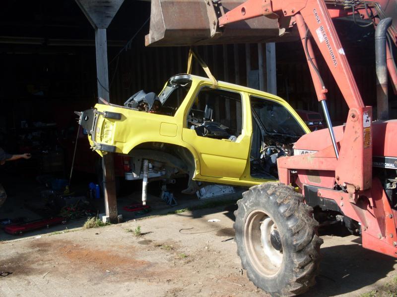stripped the doaner 90 4runner of what i needed and parted out what some people wanted... i will be using the v6 rear axle front rotors and calipers, brake booster and master, clutch master, and i pulled the steering box for a spare..