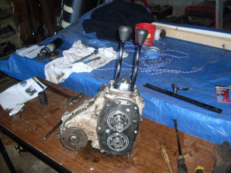 it was a forward shift i had in there... when i went online to trail-gear their twin stick was $149 just for it but there top shift conversion with the twin stick was also $149 so **** the more i can buy for the same price the better....also when i bought the second case to do my duals i was told some metal shavings from the grinder (from the previous owner) may have gotten into the case and it would be a good idea to take case apart clean it out and put it together... i figured i would just take one case about (that one) and make a crawl box out of it and take the case that was already on my truck which i knew was good and throw it in the rear.....with all that said you can't shift a forward case into the crawlbox so a top shift would have to be done... little did i know at the time inorder to do the forward to top the whole case had to come apart.... i was just expecting to knock out the push pin and slide the shift rail out .... but once i got all the parts and saw what i had to do i said hell with it and just did it all anyway..... it was fun quick and easy... only took 3 hours to do everything...(2 cases completly disassembled 1 put back together and the crawl box made and mated)... i can live with that.... also i reversed my crawl box shifter because it was interfering with the twin stick (levers too long) so by having both top shift and a reversed shifter up front there is plenty of clearance for all levers now :awesomework: