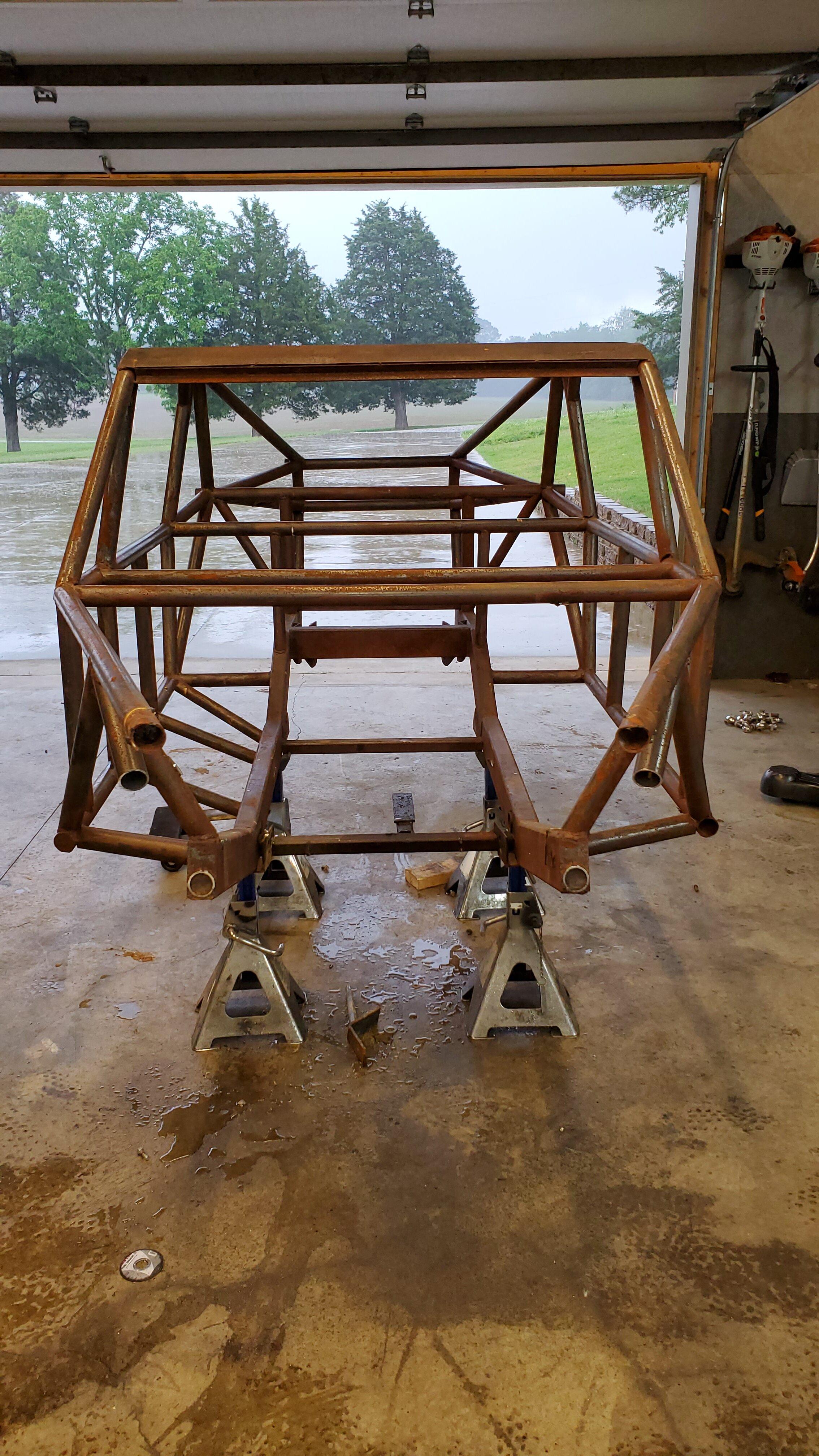 I don't know much about the chassis as I did not build it. I bought it for the parts that were in it. But, it was set up for around 108-115" WB. This chassis isn't perfect nor 100% complete. The builder wasn't the best at coping. The front end was out of square so I cut it off but I still have it if someone wanted to tweak it and weld it back in.