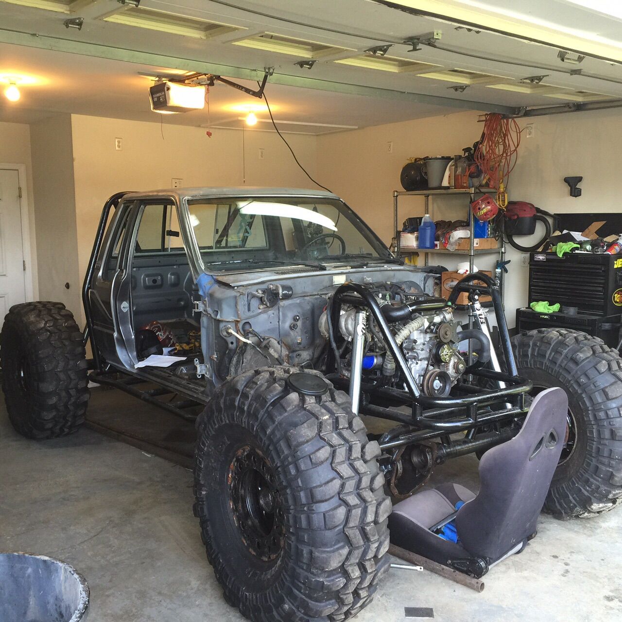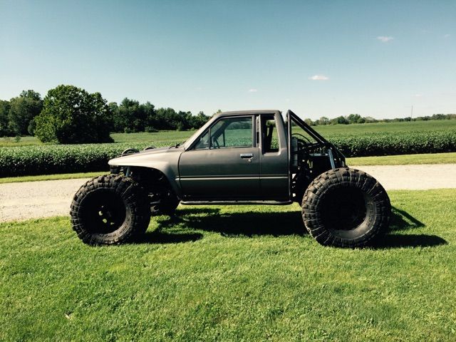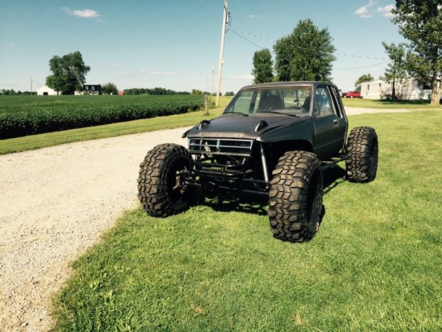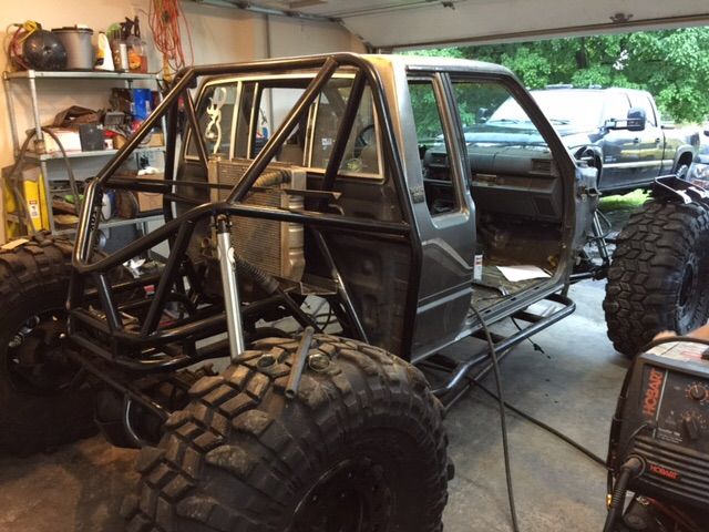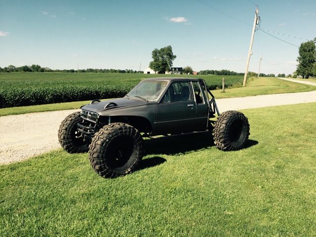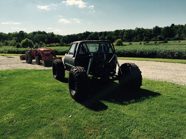 Toyota xtra cab full tube frame with coolant ran through frame rails. Rear mount radiator