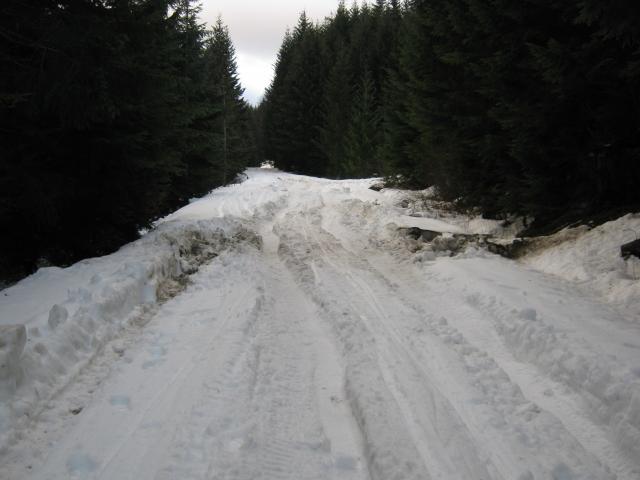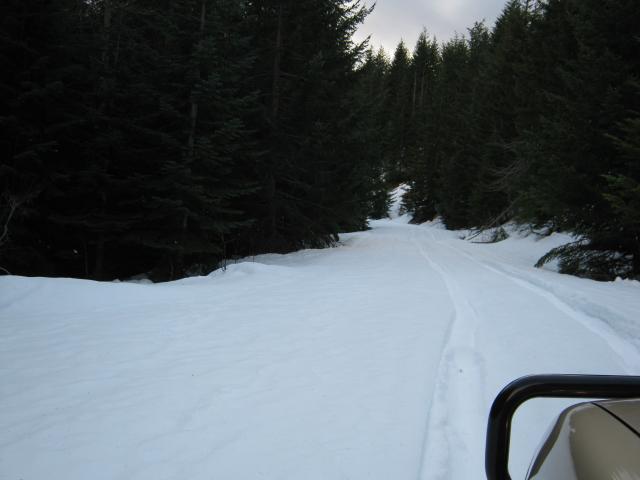 First two pictures are the frozen ruts. Third pic is where I turned around, about 1.5 miles from the top. The snow was like soft sand.