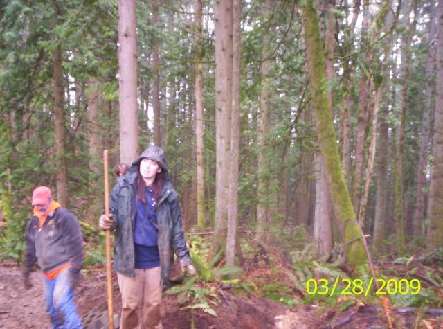 As I don't know the area very well I can try to explain..if you're at the top..twist and wind around the stumps and such and drop into the tree line...past where you zig zag around the huge root ball trees are right next to the trail...just past that...make sense?