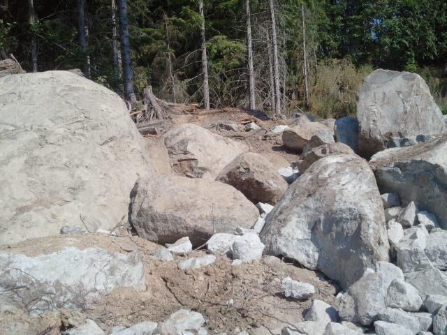 Welp, tonight we managed to get the larger rock up the trail to the area to be worked on...There's quite a bit of material to be moved yet...gonna take alot of effort to get it all moved up the trail, but I feel good about the whole deal...