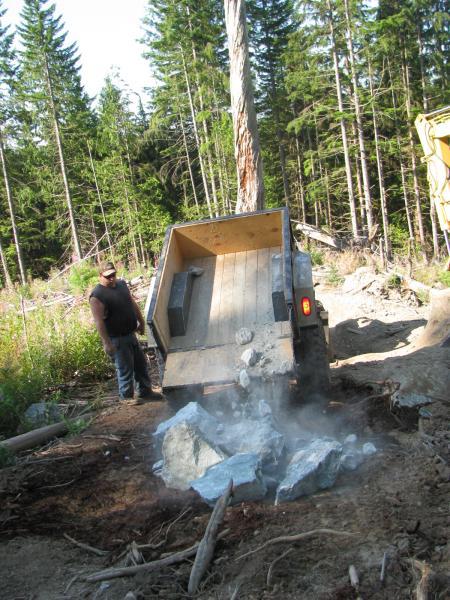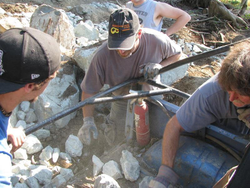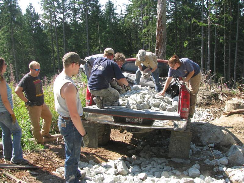 Few more pics of the day...The guy in the Power Wagon was a brute! When asked about his rear bumper and the new dent, he said "IF I replaced it, it would be bumper #3!" :haha: In another pic, "Ron" himself placing the material... Couple of folks helping unload the filler...