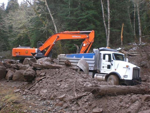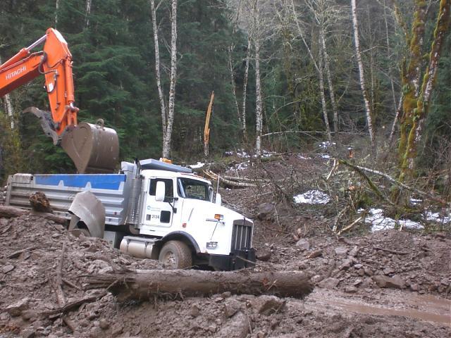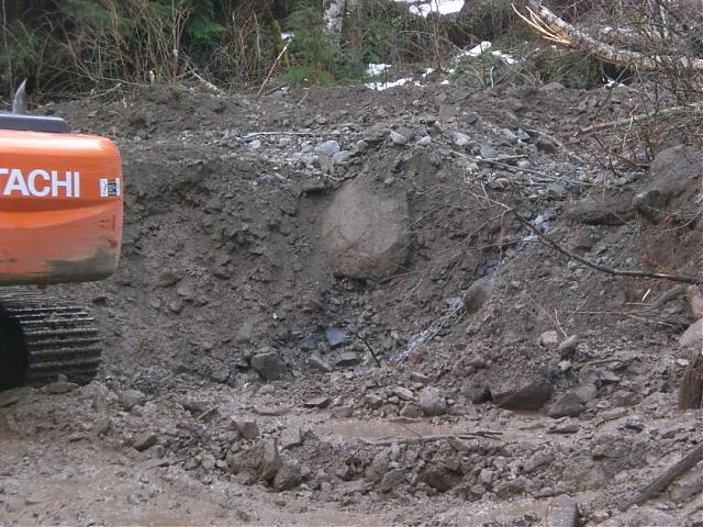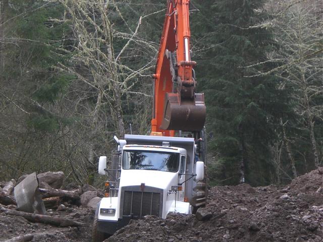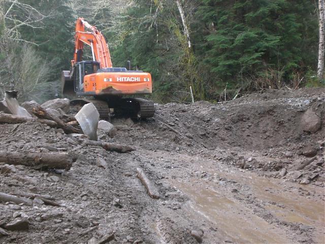 For the past 2 days, they have been working the slides on the Forest Reserve road just to get back to the main washout where their equipment is.