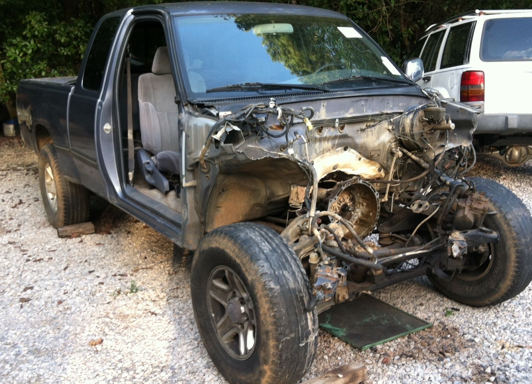 I have a 1998 4x4 v6 automatic t100 Toyota for sale. Clean ***le as far as I know in hand, this truck was bought in running condition for parts. It was wrecked an the frame is bent only In front of the control arms. Suspension doesn't seem to be hurt. I'm asking $800 for the whole truck minus the engine, harness, an computer. Or better spoken as what's in the picture is what's for sale. I would consider parting it out. But rather sale as whole. I'm not always online so please be patient with me an I will get back with those as soon as I can. Thanks for looking. Located 45 min north of birmingham alabama.