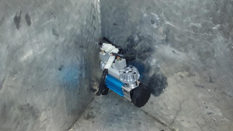 So jason wanted the arb compressor mounted in the tool box in the bed of the truck. In order to mount it where it needed I had to make a stud plate since there was no access to the back side to get the bolts thru the box. But got the compressor mounted.