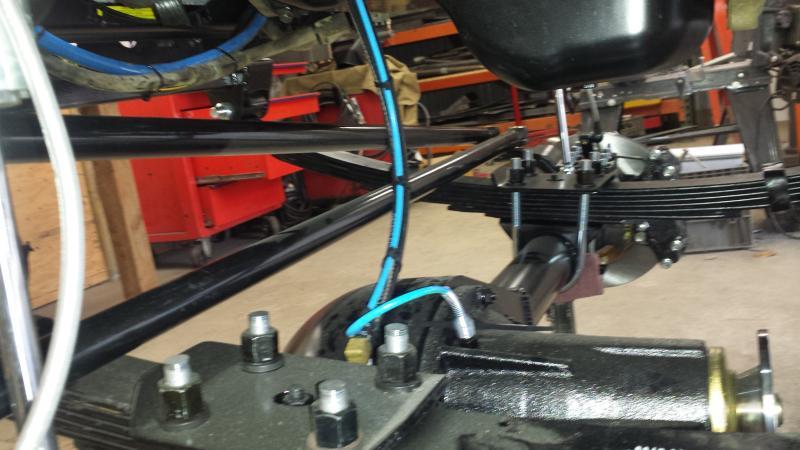 I got the tabs made for the brake lines at the knuckle. I simply used the knuckle removal hole--worked like a champ.