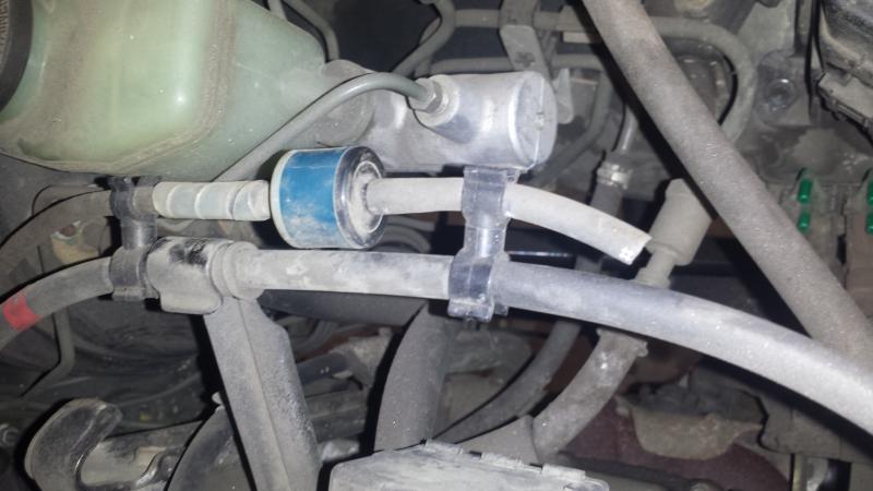 So the vacuum canister was located on drivers side front inner fender well. A portion of the mounting was removed for the steering box. So I looked over how the system was and its there for a vacuum supply for the front diff. Since thats all gone now it can be removed. To seal the vacuum system I just turned the one way check valve around...
