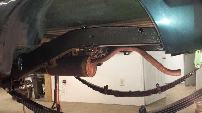 So I got the crossmember for the shocks and brake line routing/tab done and everything painted.
