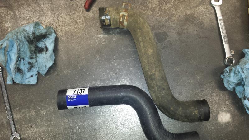 So the stock lower radiator hose would no longer work due to the different neck location. I gave Jason some homework to find the right hose and he nailed it. Once I trimmed the hose it fits perfectly.